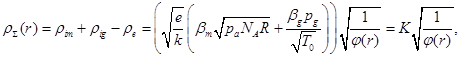 Taking into account the law of equilibrium of charged particles, defined by the relations (13, 17), from obtained relations (22), after corresponded mathematical transformers, the formula for summarized space charge ρΣ can be wrote as follows: