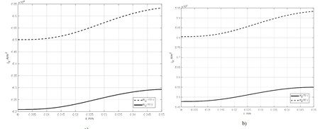 With known dependence of potential distribution at the plane of symmetry of ring electrode the value of current density of arc discharge can be defined with using equation (18). Corresponded graphic dependences, obtained as results of using described simulation technique, are presented at Fig. 7, a, b. The values of the coefficients C1 and C2 for considered parameters of arc discharge, pointed out above, was